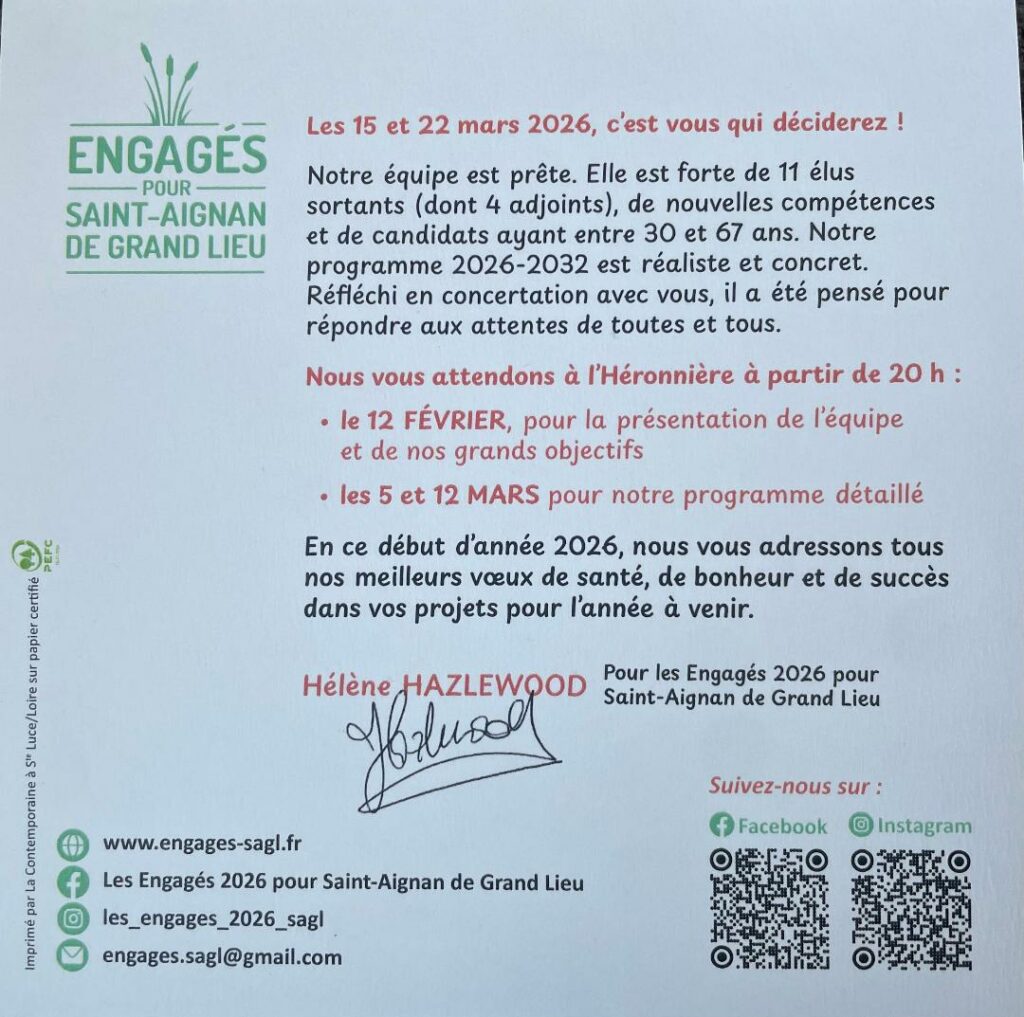 Nous vous adressons à nouveau nos meilleurs vœux pour 2026 : beaucoup de bonheur, de réussite dans vos projets et, surtout, une excellente santé.